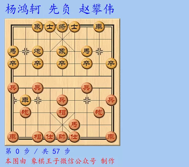 红不单丢马,还子力受制,没有攻势,黑方火力全开,车马炮跃出,加过7卒,退炮扫荡骑河线,红无力回天,杨鸿轲认败。