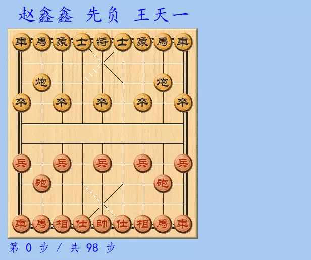 赵鑫鑫身为个中高手,也已算到这长距离杀法,红棋使出平中车的最后防守策略。王天一瞧见红方已识破超长连将杀机,无法实战演绎,索性吃空红棋仕相,以车马炮的另一路攻击之道,98手殊途同归,车马炮同时绝杀无解,霸气致胜。依着这一胜,王天一长出了一口气,赢下劲敌赵鑫鑫,不仅找回状态,队伍胜出,等级分也有回归,此胜盘,对于这届团体赛的王天一,价值不菲。