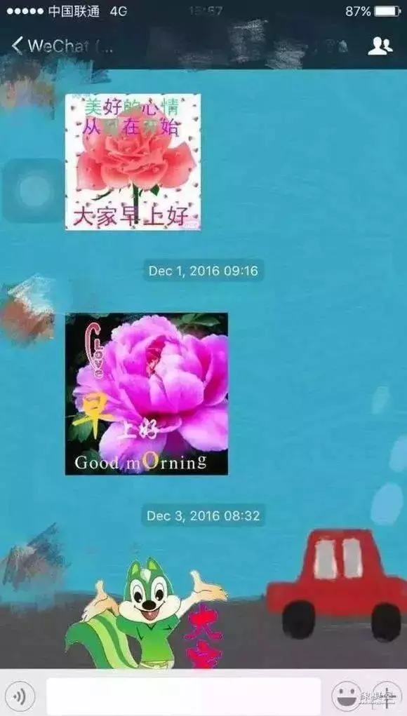 为了有共同语言,大爷还刻意模仿现在年轻人的聊天方式,收集了许多“表情包”和“网络梗”。