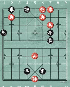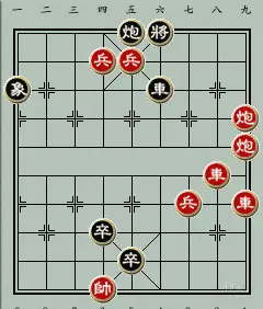 如图,红先。这棋难道不是红方先用两个炮分别将军,再一路红车将军,最后二路红车将军就赢了吗?