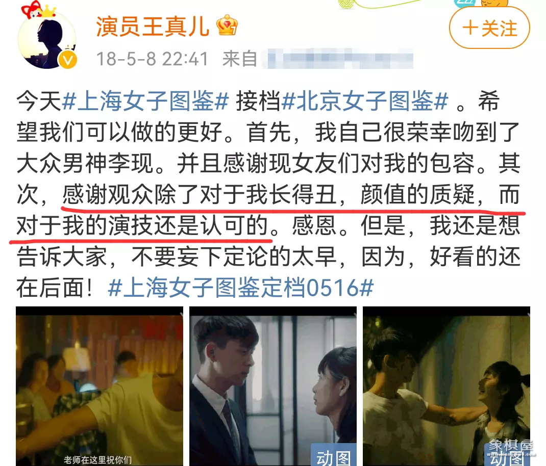 而“长得不够漂亮”是王真儿入行以来听到最多的一句话,不仅是观众,就连跟她合作过的很多导演、制片人也是这么评价她的。