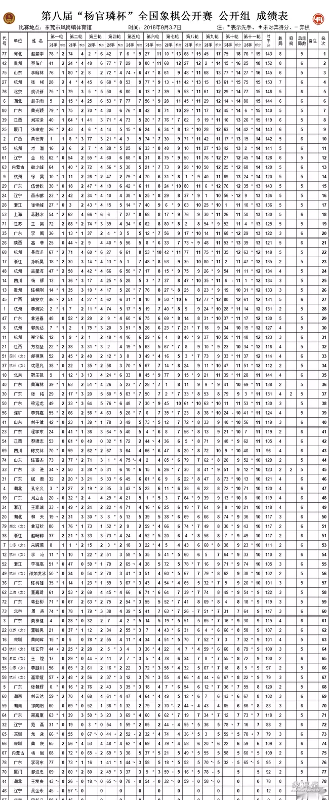 奖金设置:男子组冠军2万元,女子组冠军1万元。比赛时间安排:3月12号开打四天战七轮第一轮对战表:大师们强强相遇,男女大师混战。
