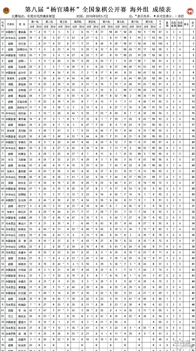 2023年3月11日,由广州市象棋协会、广州文化公园和广东东湖棋院联合主办的第二十八届“迎春杯”象棋团体公开赛,在广州文化公园中心台开枰。本届比赛采用积分编排制,共赛七轮...