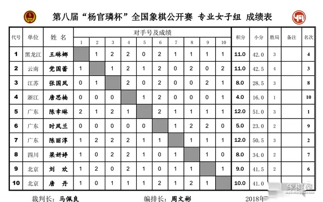 专业女子组战局十分胶着,陈幸琳虽积11分领先,但王琳娜、陈丽淳等均有夺冠可能。陈幸琳率先与唐丹战和,随后王琳娜亦与刘欢打平,此时冠军已见分晓,陈幸琳时隔四年再度夺取女子组冠军。