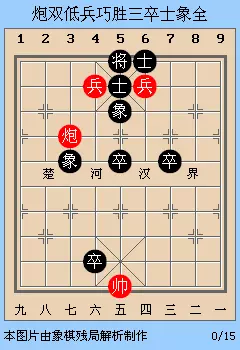 图4也是某谱之局,名曰"炮双低兵巧胜三卒士象全",着法是: