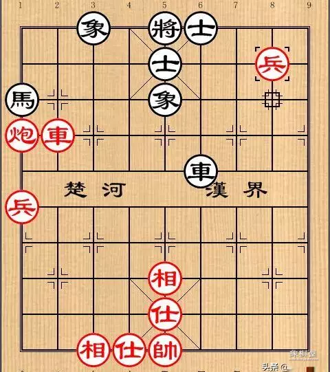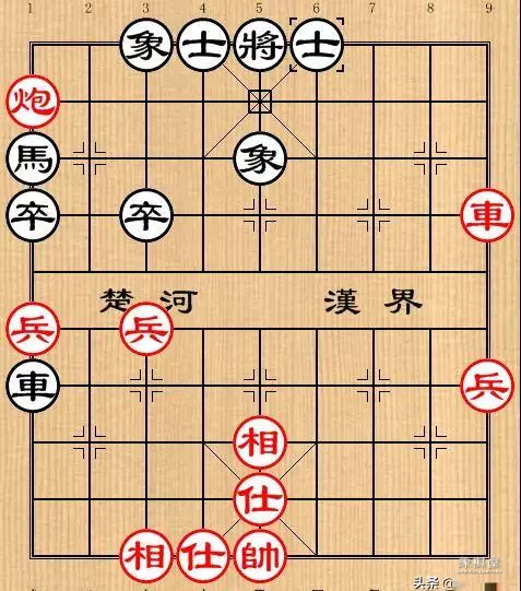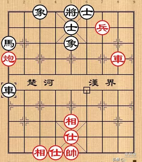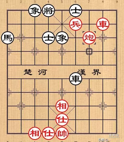 还是不敢吃兵,如改走车1退1,炮九平一,车1退1,炮一进一,象5退7(如士6进5,车一平二,将5平6,车二平四,将6平5,帅五平四,黑方丢士),车一进一!车8平2(车1平5,则车一平七吃象),车一平三,黑方丢象。