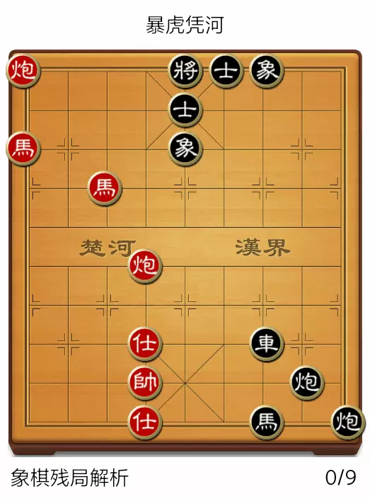 《杀局宝典》课程简介:已讲解75节课程,共计将近300个杀局盘面,基本囊括了中国象棋常见的所有杀招。;(建议:没有观看或者是只初略看了一遍的棋友,找历史纪录出来认真看看“学棋先学残、残好艺自高”)接下来以图文的方式,分享第78期《杀局宝典》的课程。名称:仗剑鞭马(马炮先胜马双卒)初始盘面:动态棋谱: