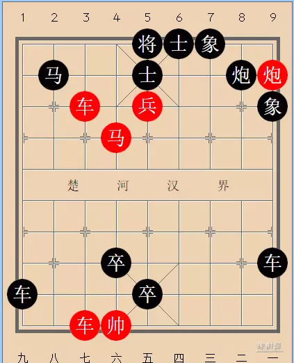 又如改走将5平4,前车进二,将4进1,后车进八,红胜!