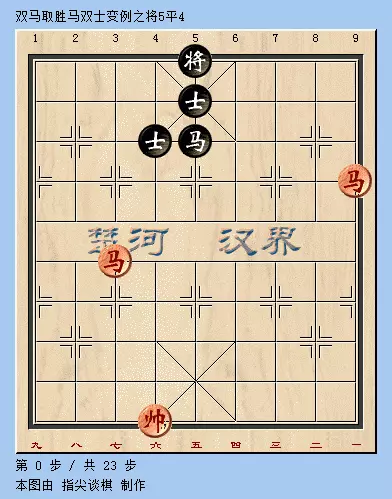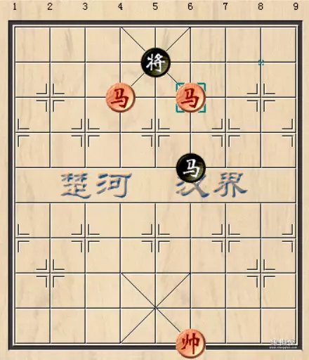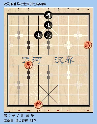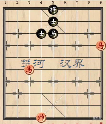 如上开局图所示,红方孤帅双马,黑方将马双士,有些棋友会这样分析,平时下棋单马对双士,如果将士位置协调,那么基本就是和局。就这个棋局而言,无非就是在此基础上,双方各自多出一匹马,如此一来双方实力对等,最终应该也是一个和局。这样理解是否正确呢?不是你的数学不行,除了步数推演计算,数学不适用于子力价值计算!我们看完如下图所示,红方经过子力迂回周旋,最终可以击败黑方。