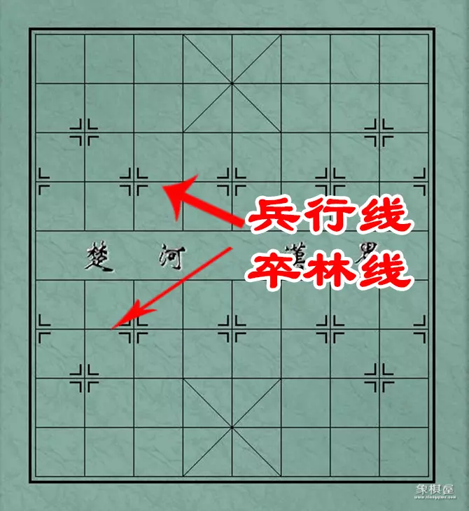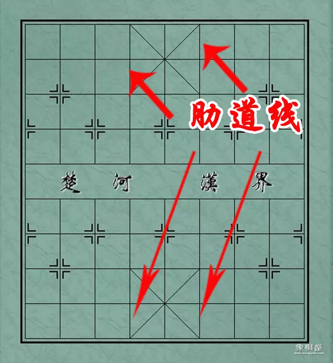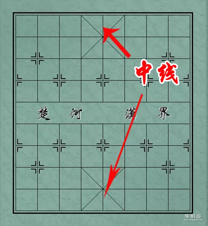 棋盘中线左右的两条竖线,也就是将(帅)位左右侧竖线。