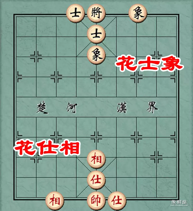 指对局过程中,双士象(双仕相),在中线联防时左右分开的一种形式。