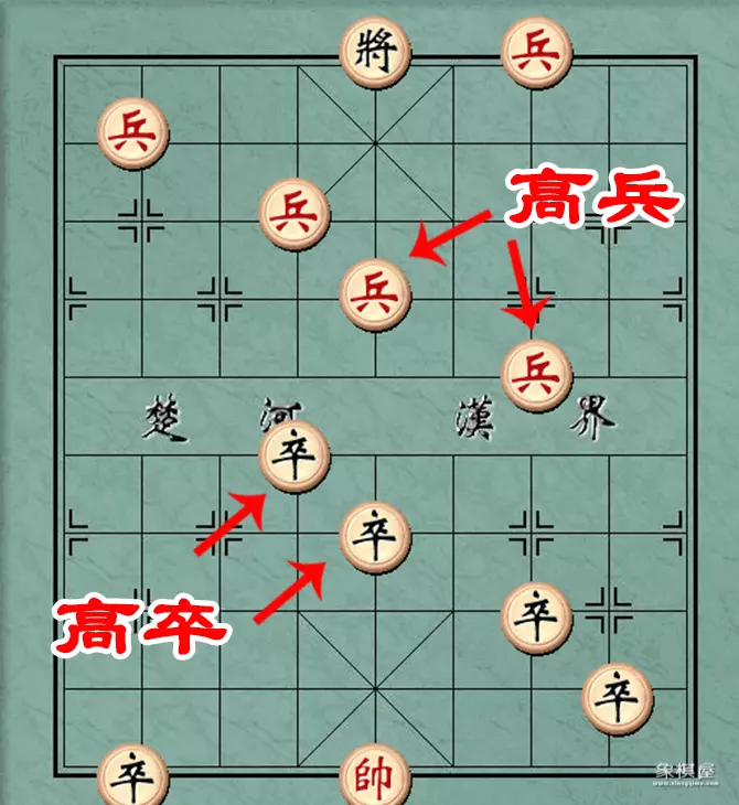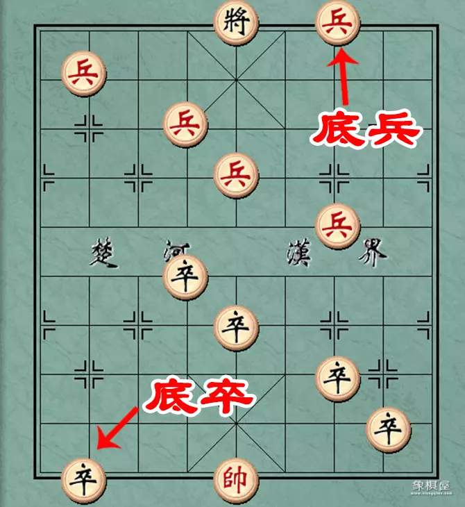 指进入对方底线的兵(卒),又叫老兵(卒)。