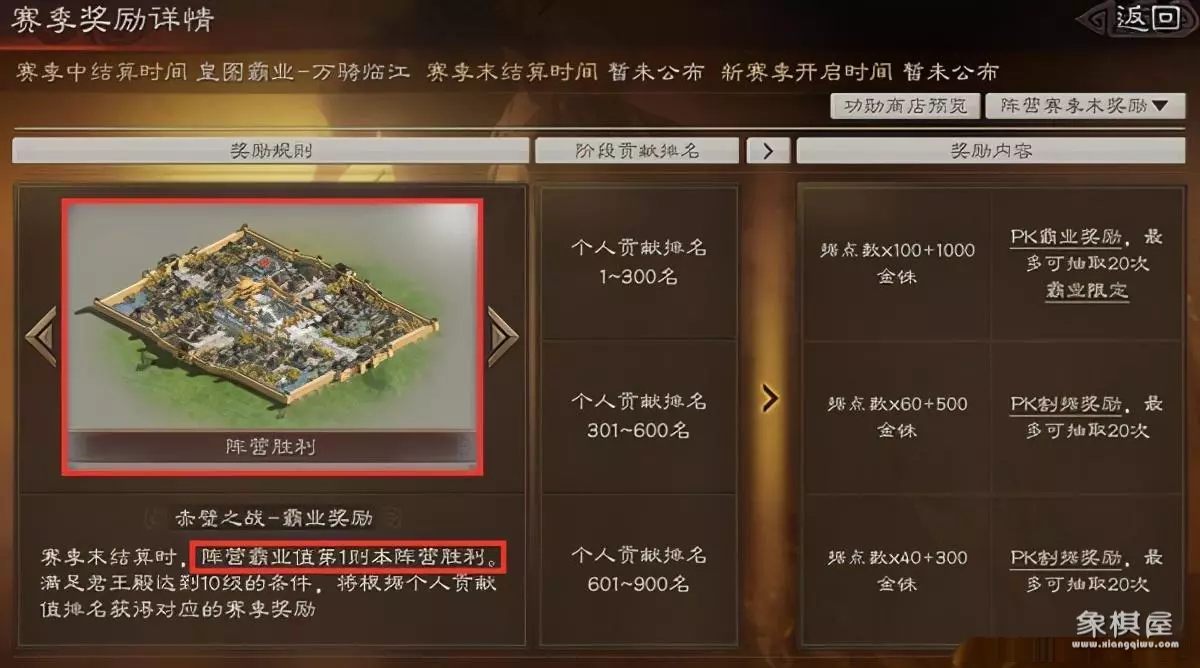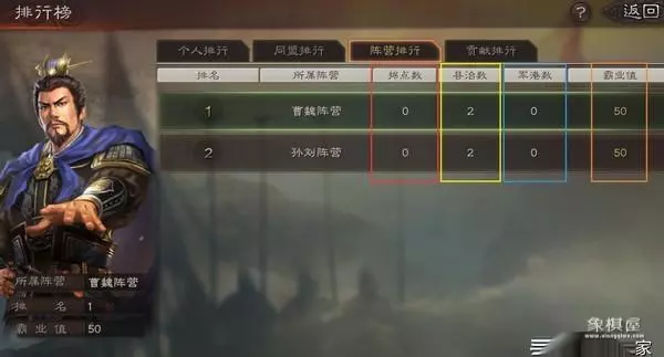 赢得赤壁之战的方法是本阵营霸业值第一,而霸业值与占领据点、县治、军港的数量有关。