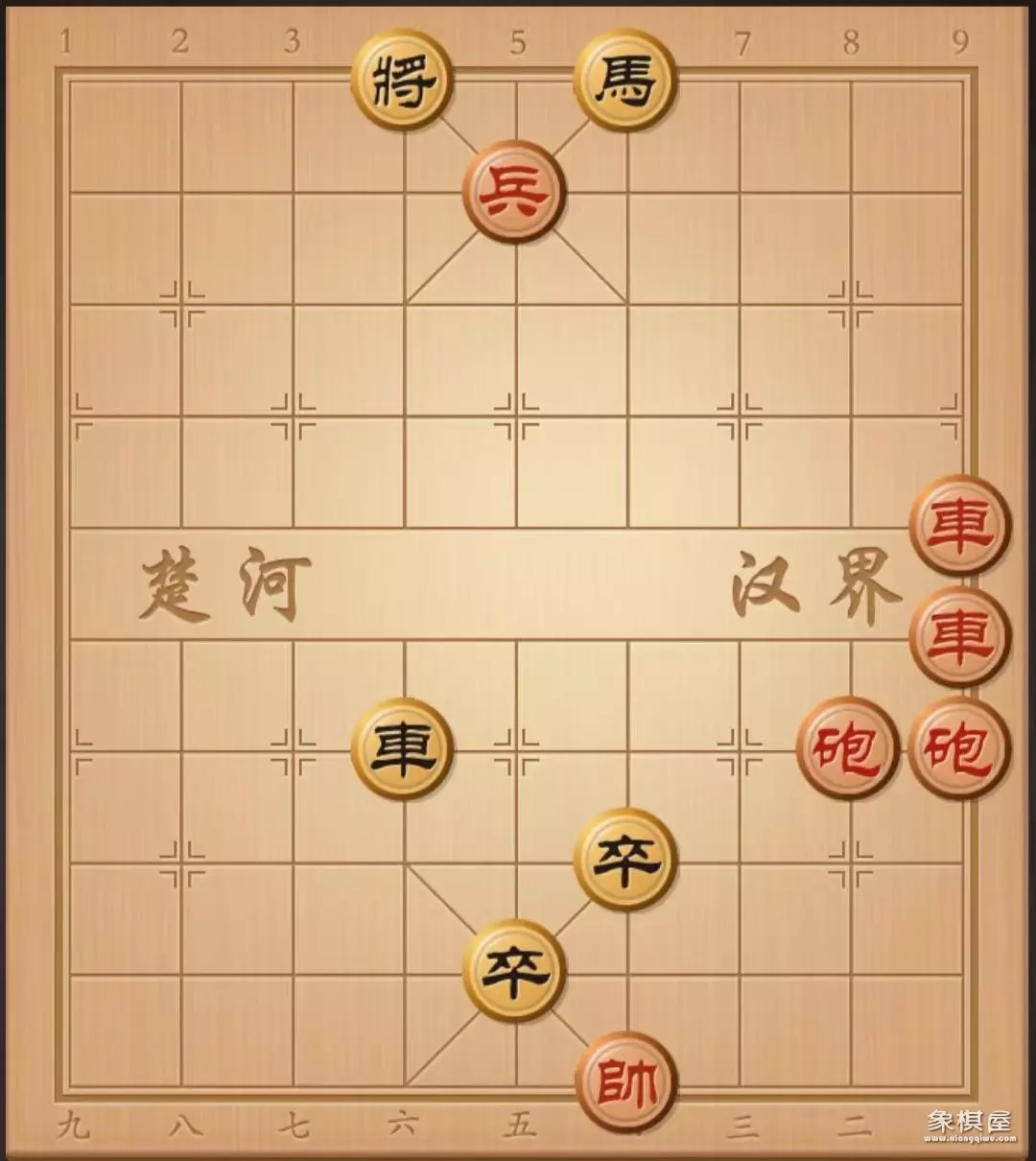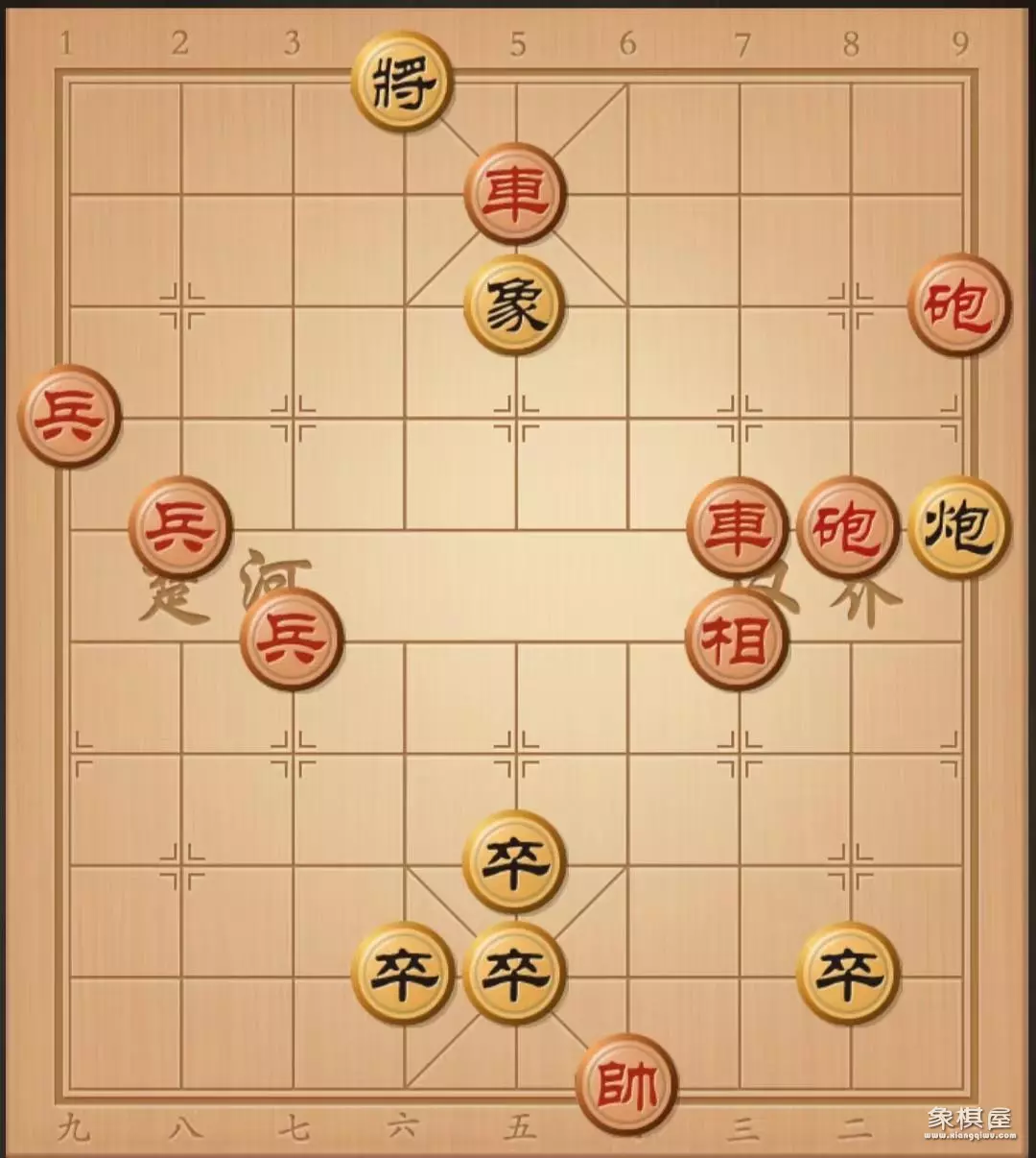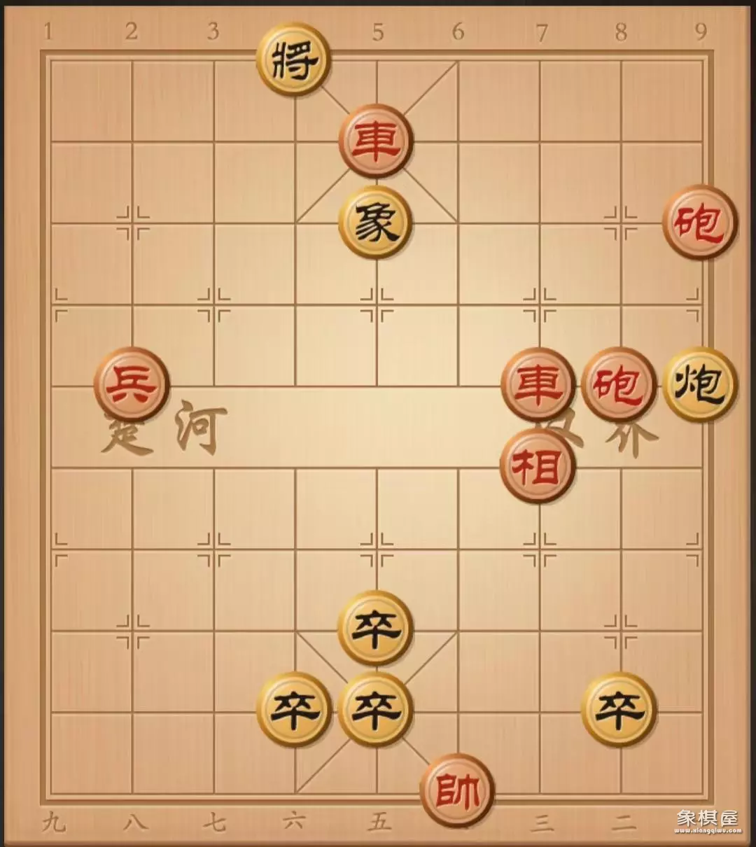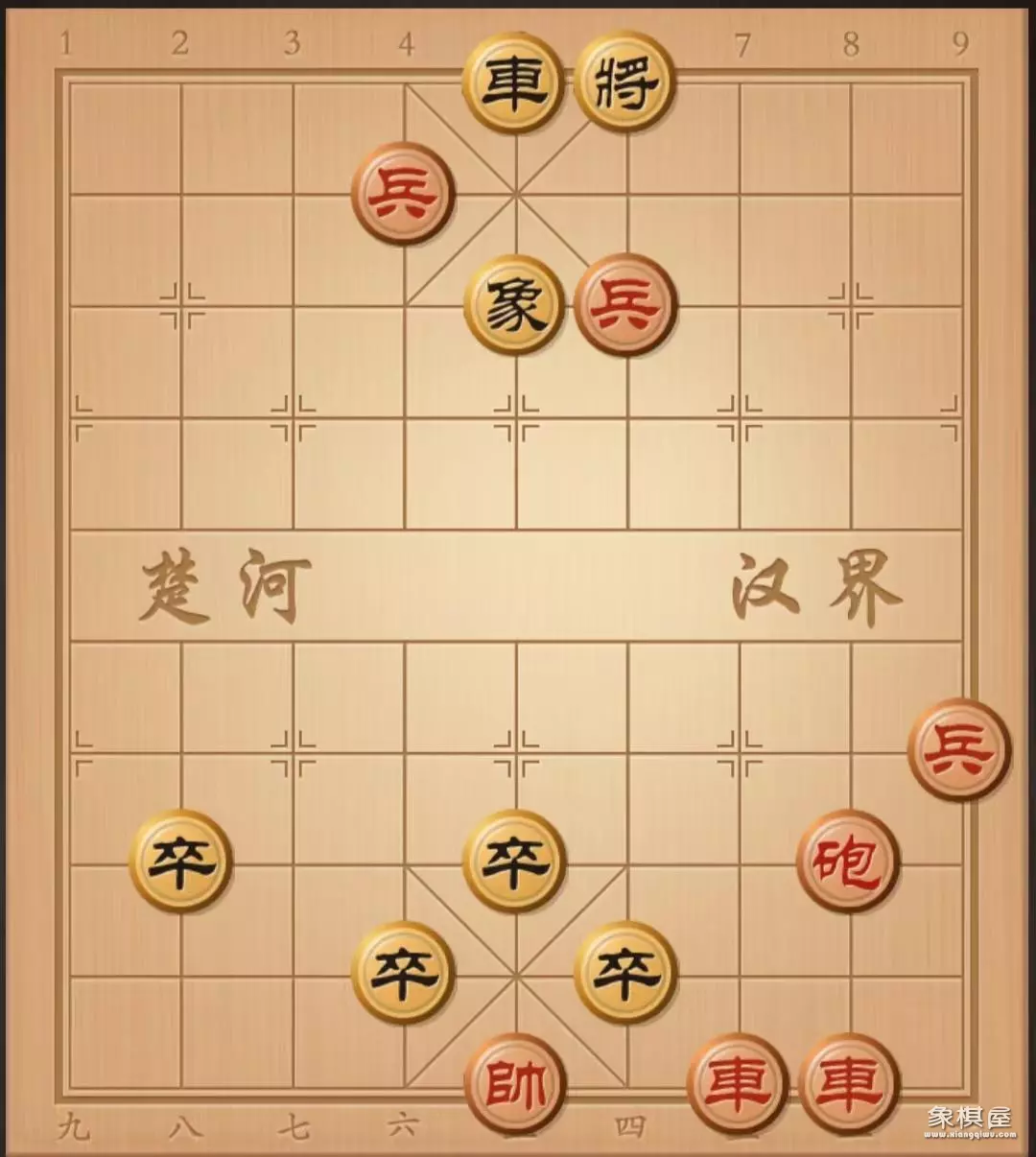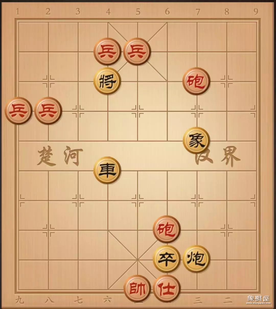 今天给大家讲解一下,这盘棋的另外一种陷阱。如图红棋先走,黑棋先胜炮二平四 卒5平6兵四进一 将6进1兵六平五 车5进1车三进八 将6退1车二进九 象5退7车三平五 前卒进1帅...