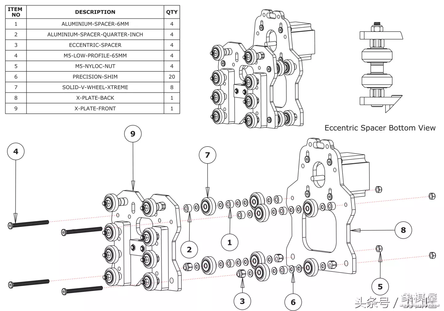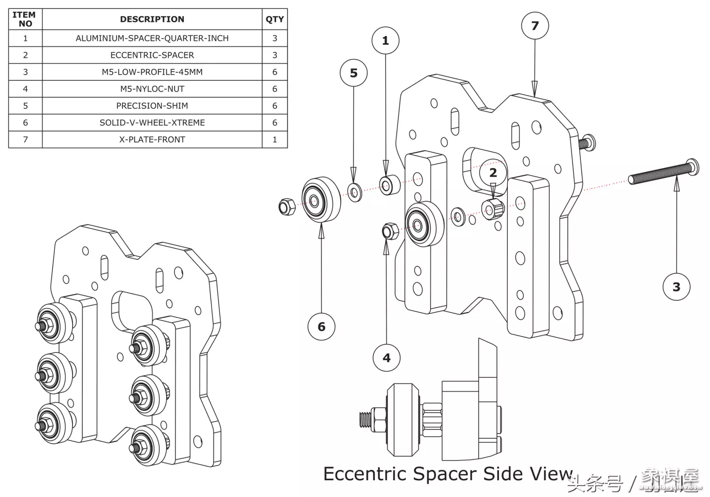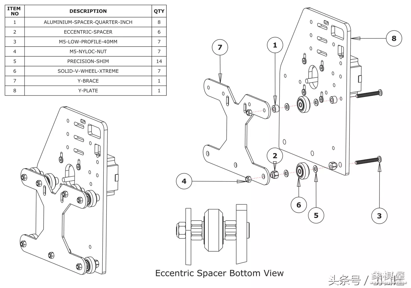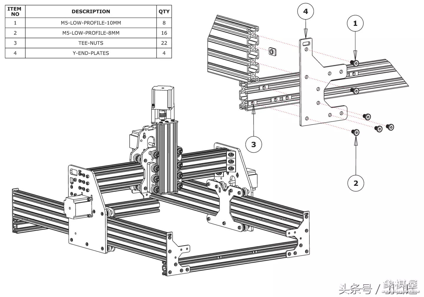 开关电源,高速雕刻机马达(激光头也行),六角螺丝(毕竟好用)一般m8的,雕刻机用的小滑轮(一块多一个需要28个)