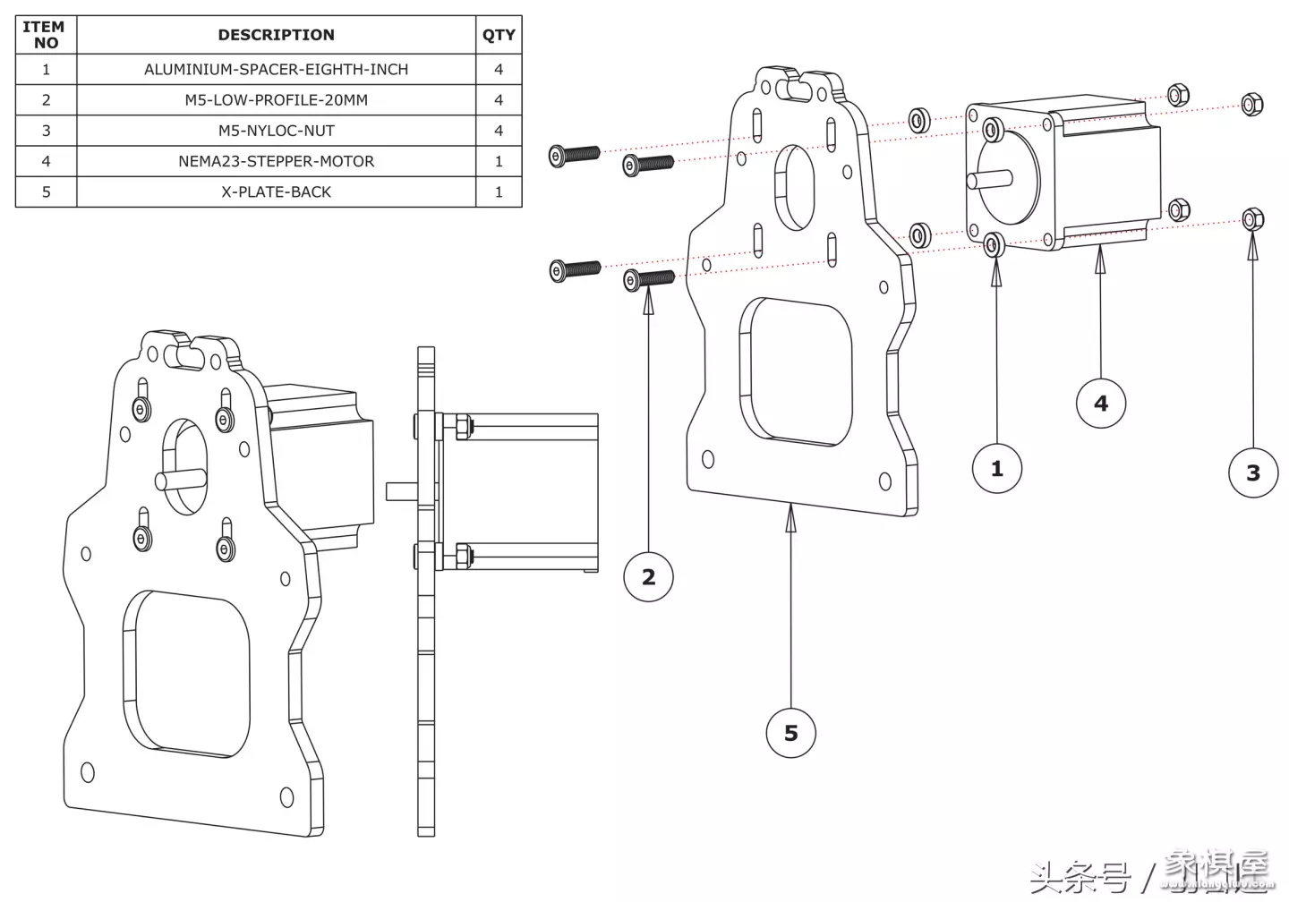 x轴滑架装好了以后,就要安装步进电机了