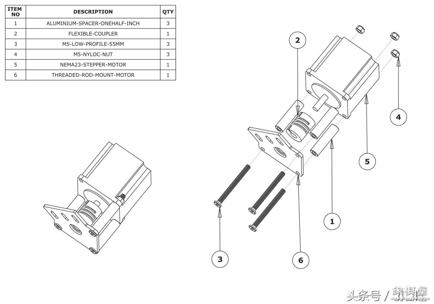 步进电机装上联轴器再连上丝杆,用长螺丝固定电机