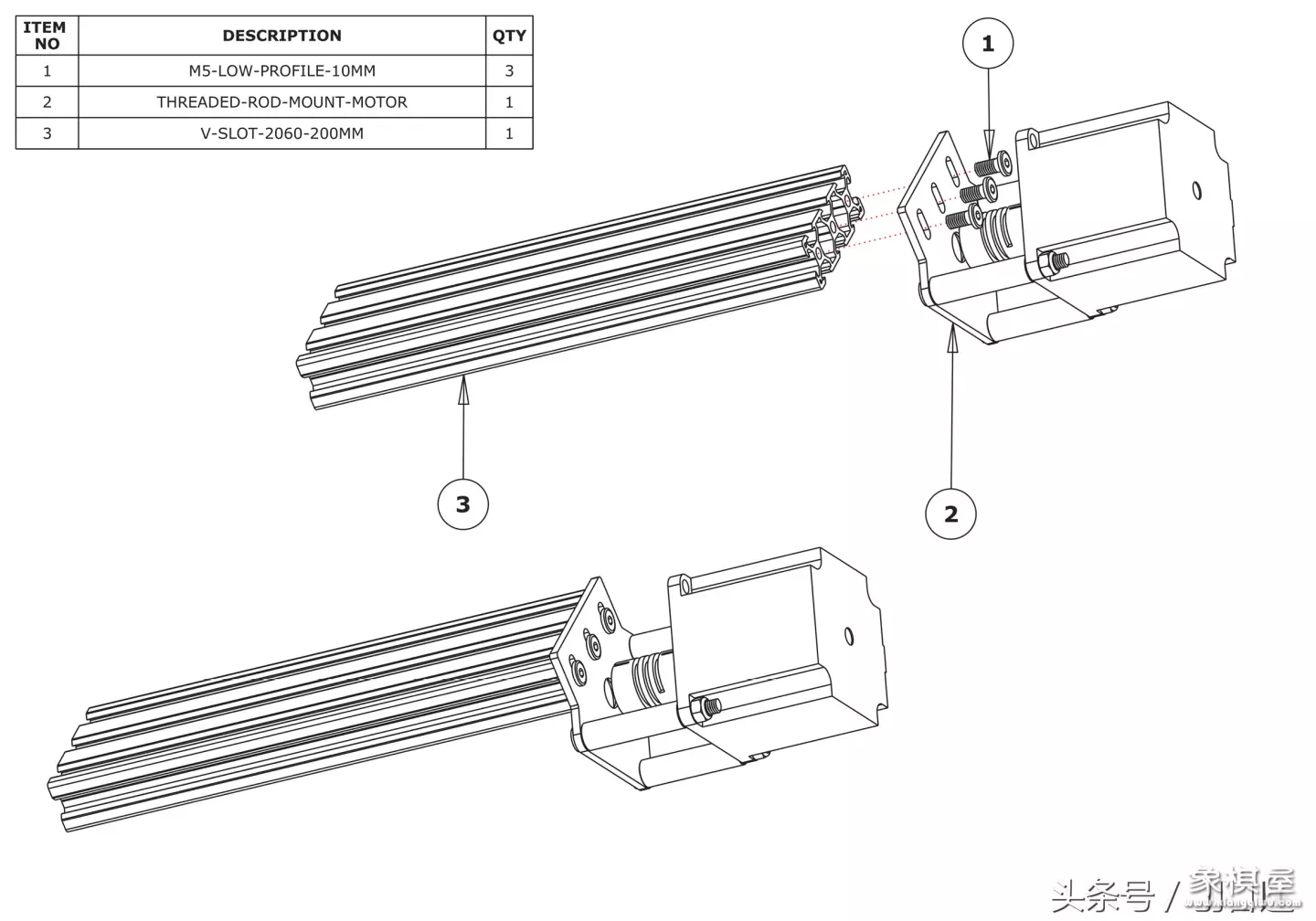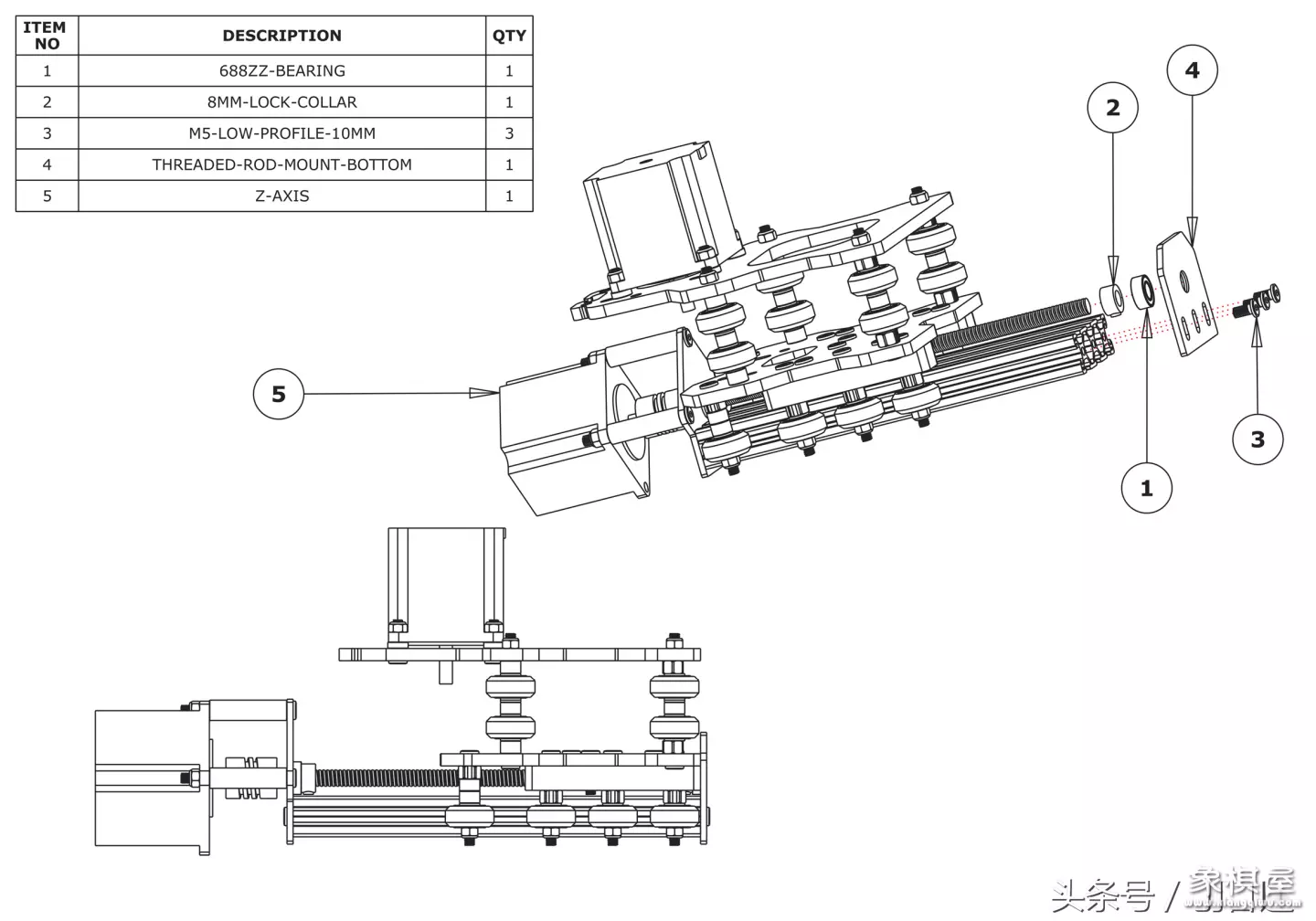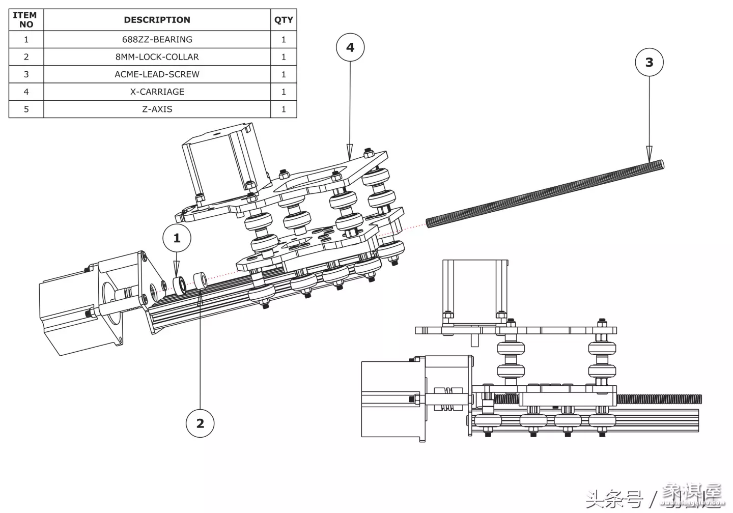 下面是x轴滑架,螺丝要长,短了用不了,这里是m5x100mm的