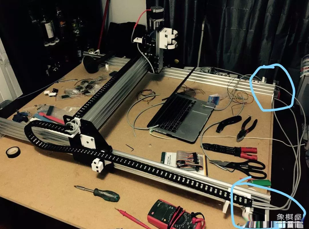 两个y轴步进,丝杆固定在x轴,把电线穿进拖链里面,这样来回动就不容易断