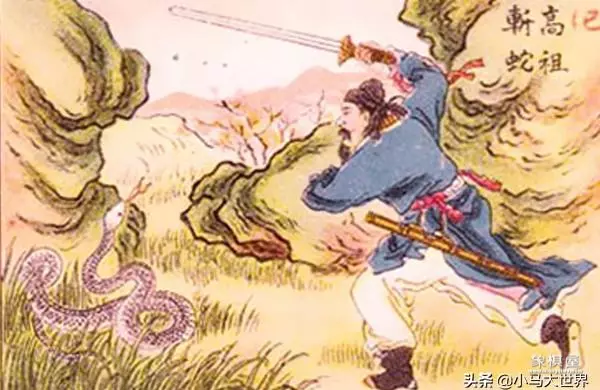 此人边哭边说这白蛇本是白帝之子,其一时兴起化作白蛇在此山游玩,却不幸被亦帝之子斩杀。而话刚说完,那老妇人就消失不见了。如此传说可谓是寓意深远,不正是在说当时残暴的秦朝即将要为新的王朝所取代。于是斩杀了白蛇的刘邦便自称为赤帝之子,顺理成章地爱上了红色,军中大旗、士兵战袍也都被其定成了红色。