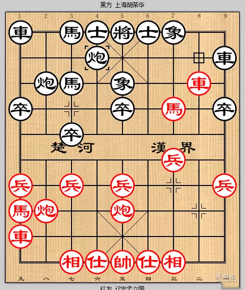 再审察一下形势,红方多一兵,子力基本活跃,唯边马较弱及仕相未补,中防薄弱.黑方除左车未亮头外,各子较活跃,士象工整且子力集中,冲击力强,虽说是均势,但黑方较有潜力。