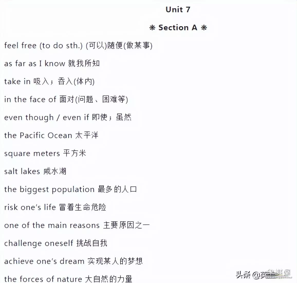 七年级全册重点短语和句型