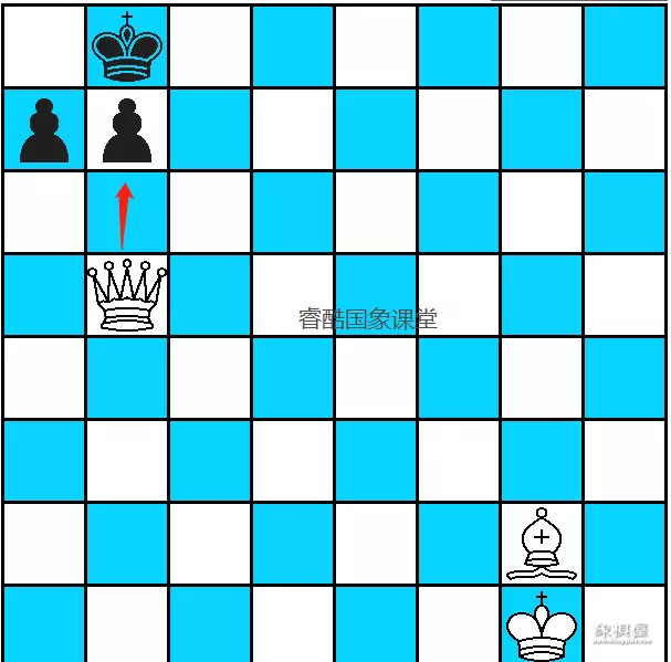 因为黑方王既无法在底线停留,也不能上第七横排,(送到白王嘴里)
