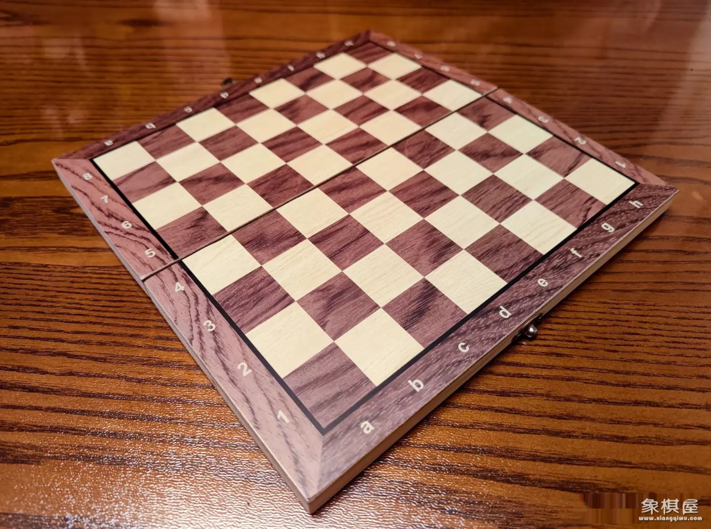 棋盘是整体木质材料打造的,边缘全部打磨过没有毛刺感,合页带个按扣机械锁,卡起来还不错