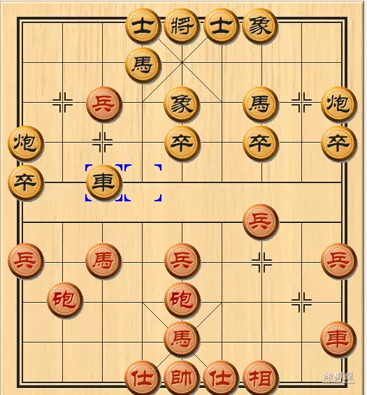 实战图七,鉴于上图的原因,黑车在吃了红炮后退一路,准备再抽吃红车。此时红马二退四绝妙!一下子防住了黑车抽吃红车的手段。以下黑车5平9,红帅五平六,黑车无法在四路将军,势必被吃。黑车退一抓马也不行,马四退五后,黑棋所有攻势化为乌有。