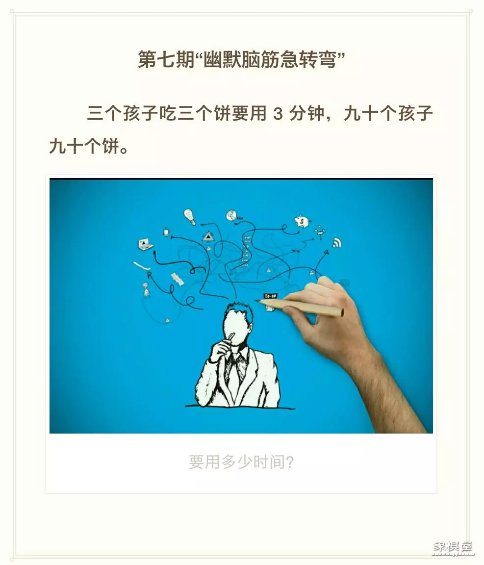 “幽默脑筋急转弯”—也是五分钟,九十个孩子一起吃。