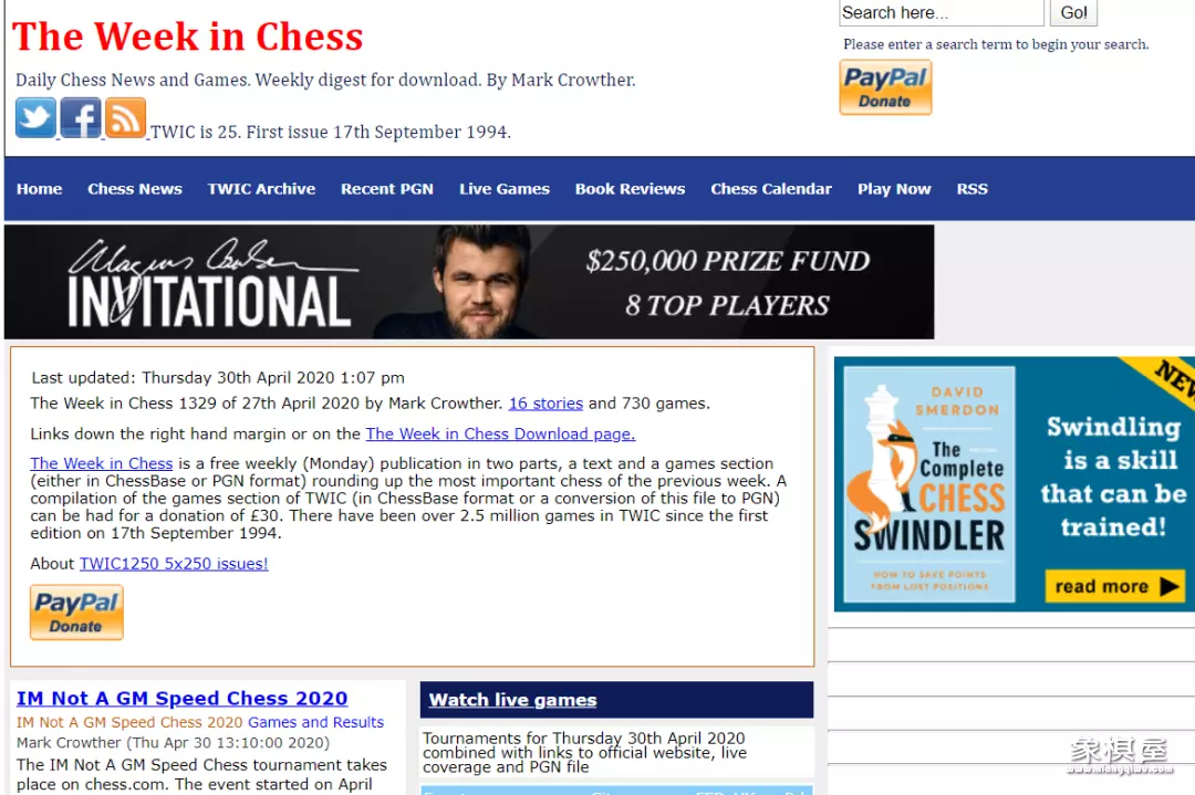 世界上最早的国际象棋网站,包括残局研究、国际象棋图书评论、详细的开局分析等,网站还收集每天世界各国的有关国际象棋报道并提供网络链接索引。