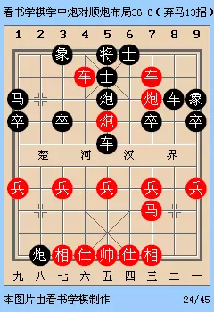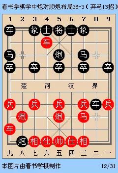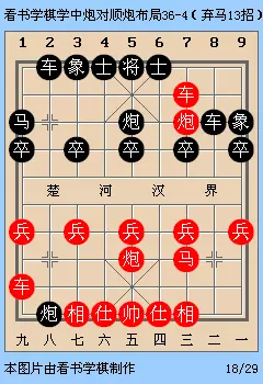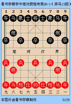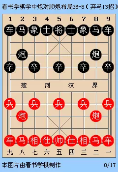 最近几个月一直在努力学习中炮对顺炮布局。今天学习中炮对顺炮布局第36集:中炮横车破顺炮直车--就是江湖上流传已久的弃马13招。