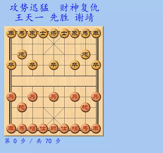 王天一、谢靖,两人刚刚于一个月之前,象甲联赛季后赛半决赛最后一盘相遇,当时王天一被谢靖马炮残棋反杀,再次与联赛桂冠失之交臂。这一战,对王天一有不小的打击,算下来,外星人已经连续两度,象甲毁于上海棋手之手。今天的对决一开启,首盘棋谢靖先手和王天一。