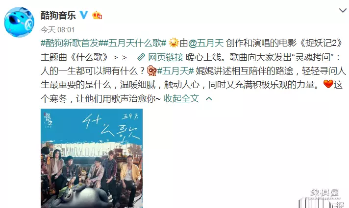 一大早,小编就接到了来自朋友的灵魂拷问:五月天发了什么歌?是什么歌?什么歌!五月天今天在酷狗首发的2018第一首单曲,也是电影《捉妖记2》的主题曲,歌名就叫《什么歌》!emmm~这个梗必须得笑一天!