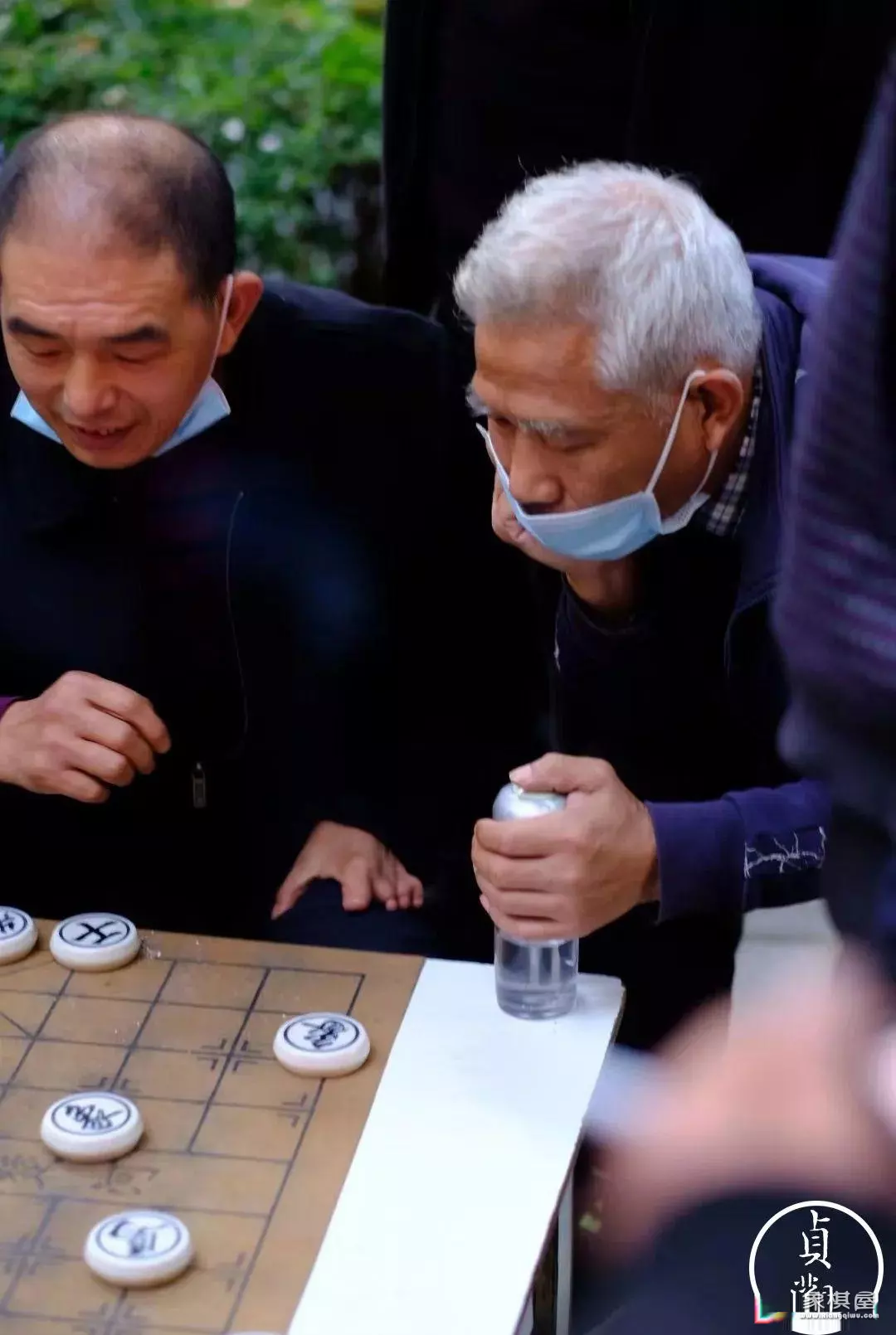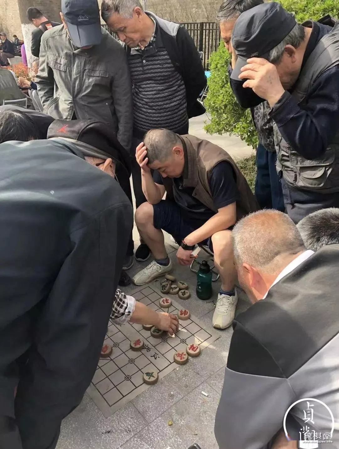 其实,老任身后还蹲着一个四五十岁的中年人,貌黑、宽脸。面前也有一副棋。中年黑脸一般蹲着发呆、抽烟,老任下棋也不过来围观,甚至于连看都不看一眼,就跟一座雕塑一样。我看棋的那段时间,中年黑脸唯一起身说话,是对赢老任的那位小小伙。来,兄弟,咱俩来几盘。小伙拒绝了,然后中年黑脸后退几步,继续蹲下抽烟。