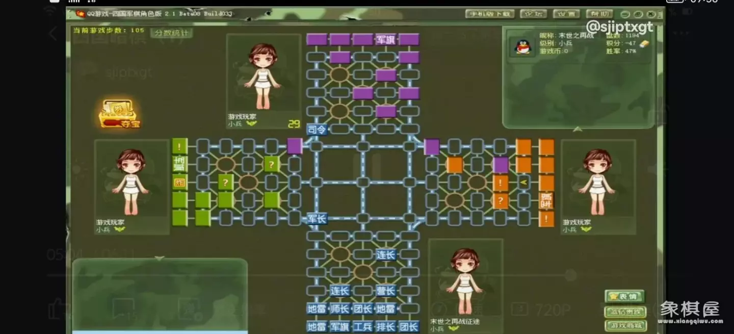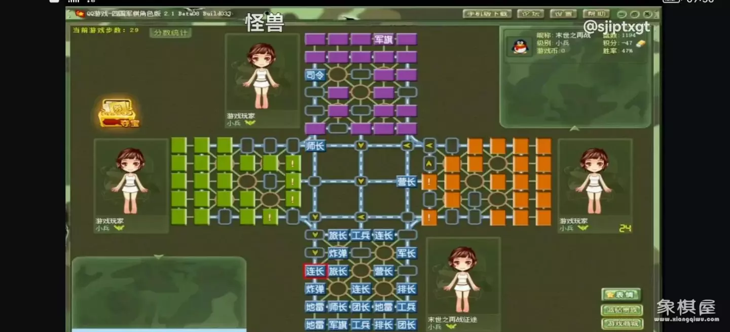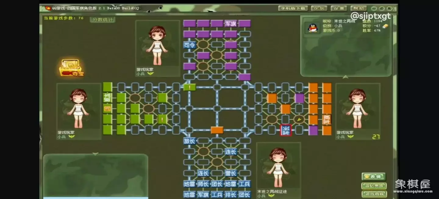 四国军棋(qq游戏里面)的规则和行军路线类似于象棋(经常下象棋的友友,我一说,你们应该就懂得)。