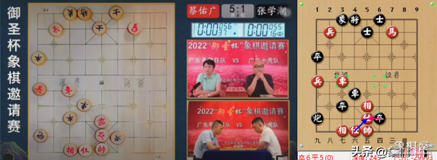当中,首局战平,次局金马车胜,第三局张特求急再败,第四局压场战,张学潮执后手走成了绝杀的形势,一步卒6平5就杀。