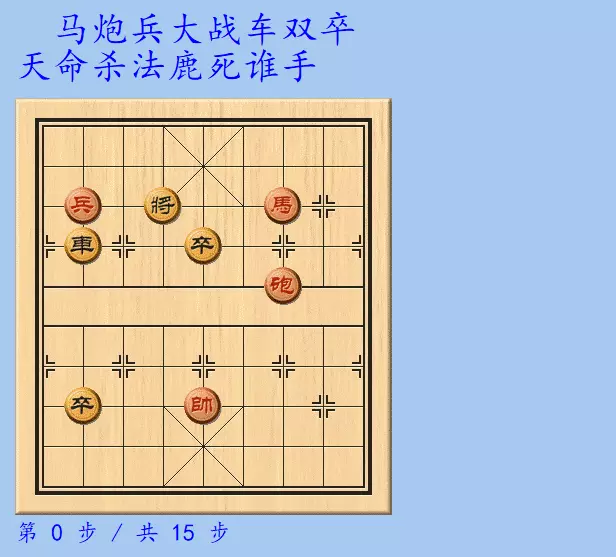 大家看棋盘上,红方是马炮兵光老帅,黑方是车双卒光老将,这棋红方先行,究竟鹿死谁手呢。