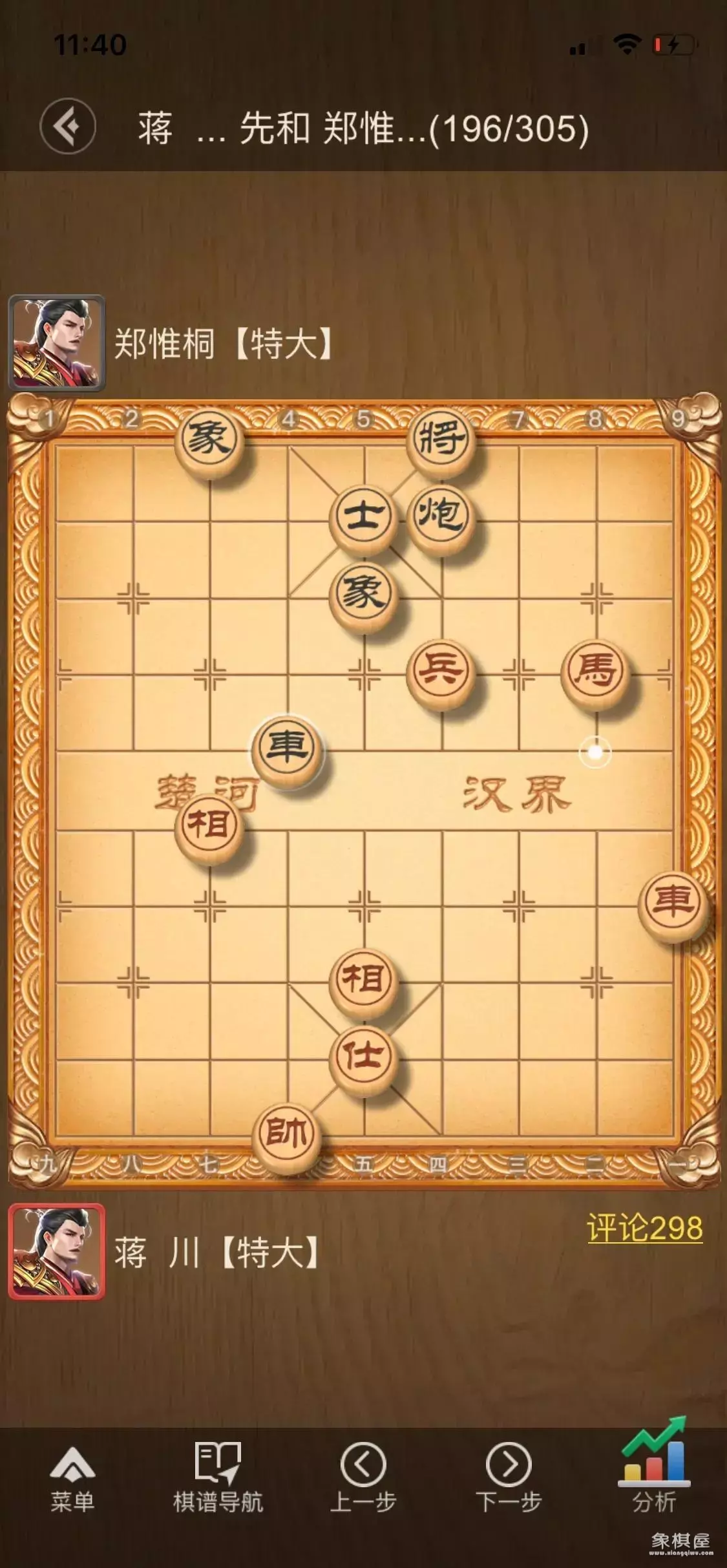 太险了,蜀山少侠躲过一劫。蒋川特大几次大优上千分,可惜最后因为象棋规则,自然限招62回合没吃子,判定和棋。我相信少侠躲过了这一大劫之后,一定能够五羊杯问鼎,咱们拭目以待。