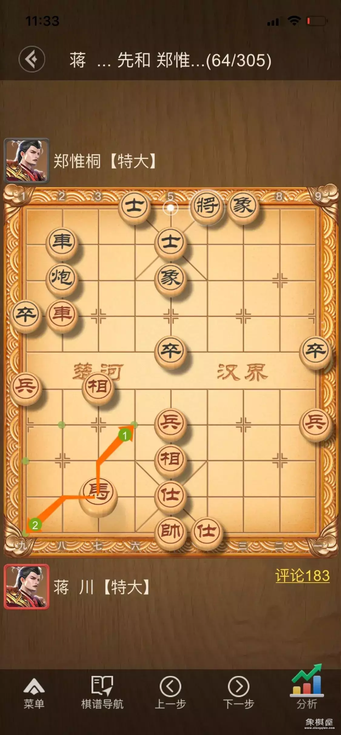 1)郑惟桐特大在车炮被牵,蒋川特大有车马三个对头兵,马随便可以腾挪!