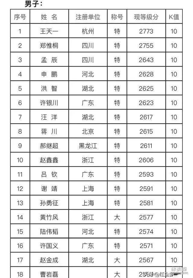 5.如果从象棋等级分排名的高低、连续次数这个标准来衡量、划分的话,王天一无疑是这个时期的象棋第一人。