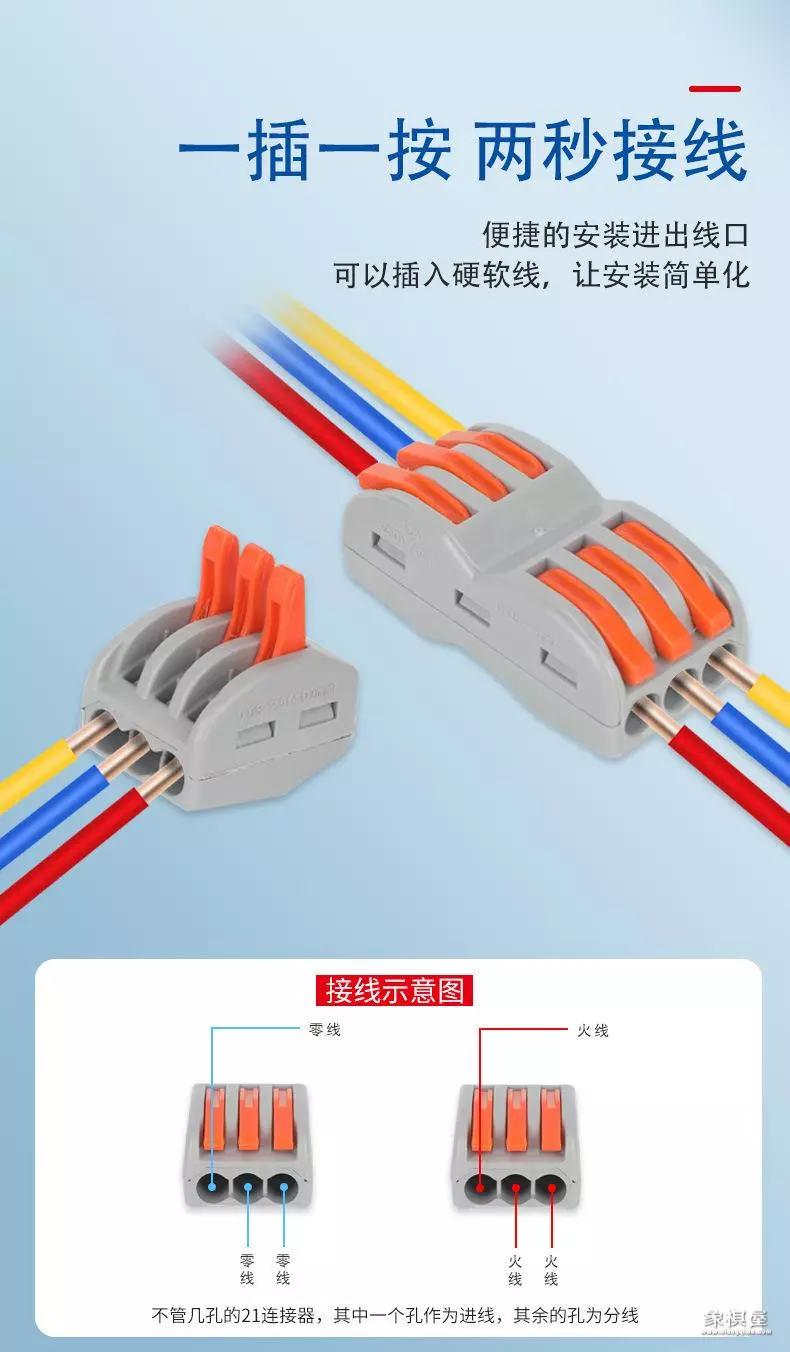 便捷:直接插接,接错可拔出,重复再接。剥线后直接插入即可,可重复使用。