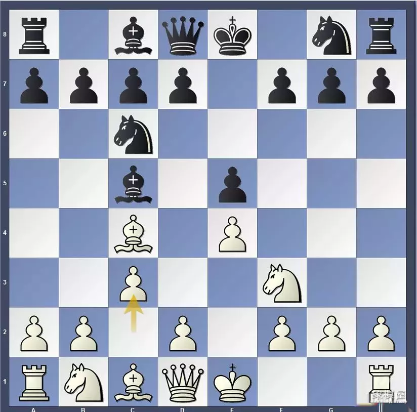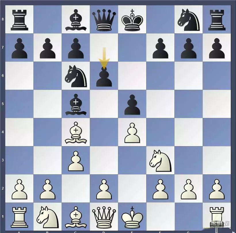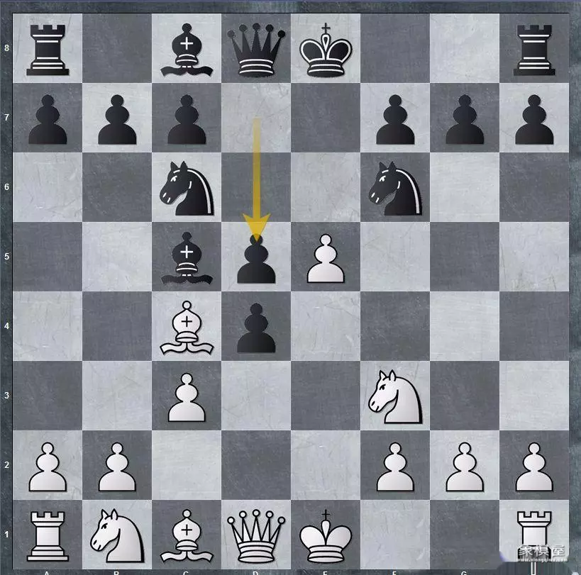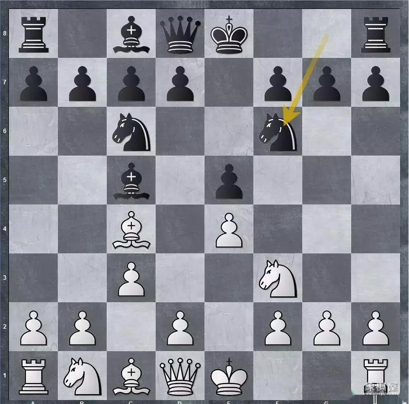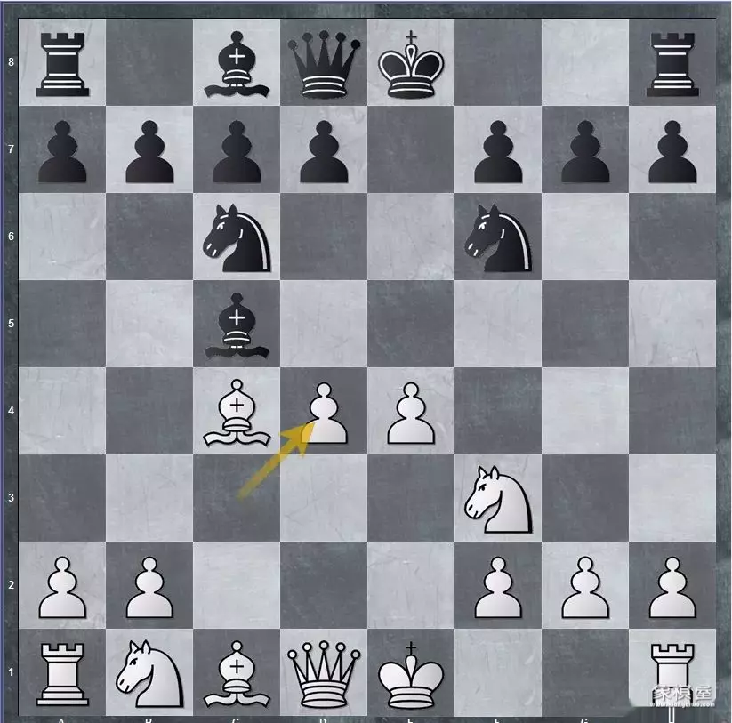这是化解白方挺兵d4的有力着法,黑方不需要用自己的e5兵去交换白方的d4兵,令人惊叹的是这一应对着法在15世纪的《哥廷根手记》中就有人提出了。