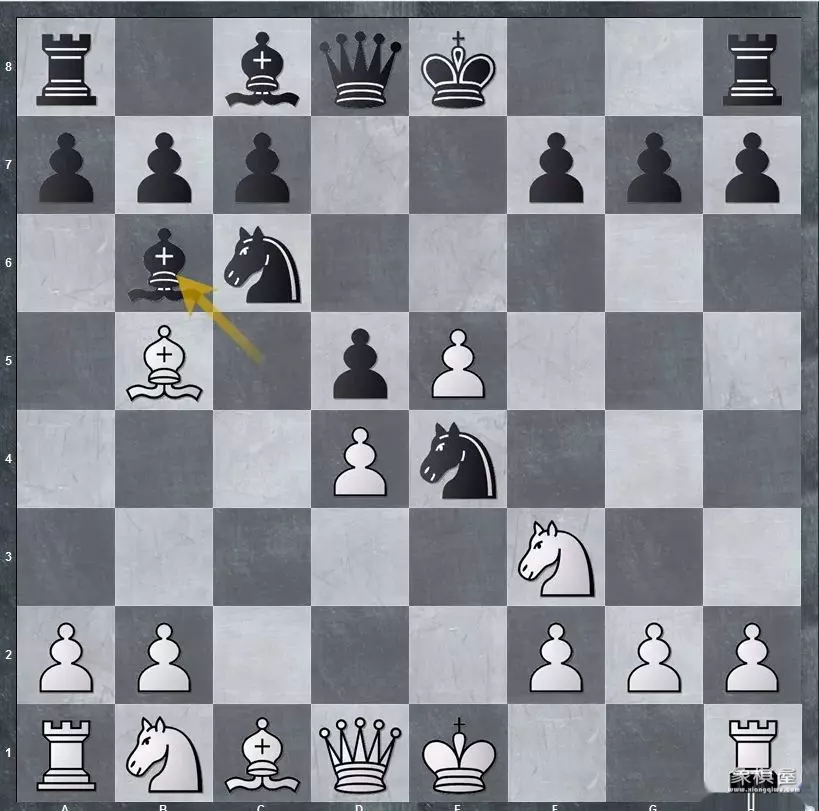 黑方退象非常微妙,如6.dxe5 nxe5 7.nxe5 qxe5 8.0–0 d6,黑方局势占优。