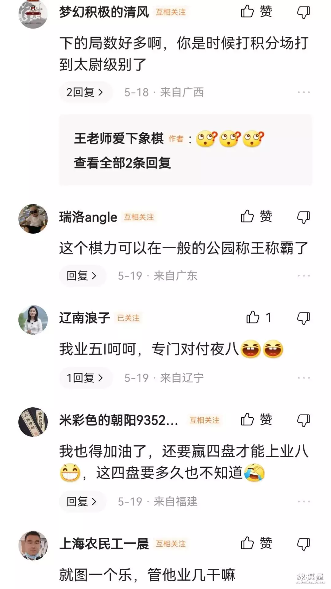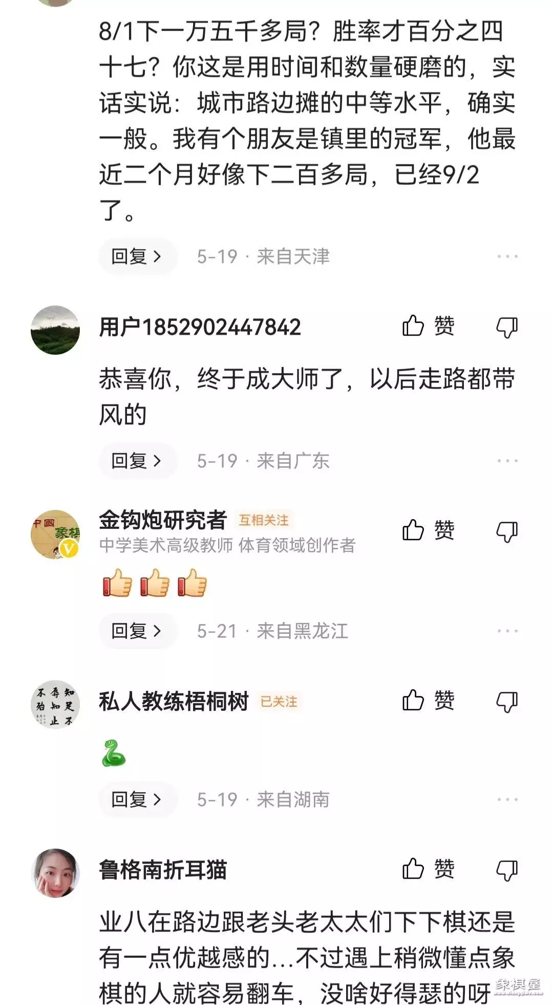我在今日头条的微头条里面,详细的介绍了我的数字的象棋经历,然后看到骑友们的评论是这样的: