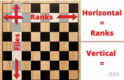 横线(rank):棋盘上横着排列的方格,一共8条。代数记谱法的第1线,第2线等。