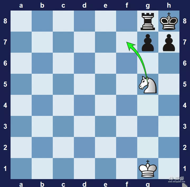 闷杀(smothered checkmate):当国王被它自己的棋子完全地围拢(或是在棋盘的边缘)并且受到一个无法移动的将军时,他就被闷杀将死了。闷杀经常由马来完成。
