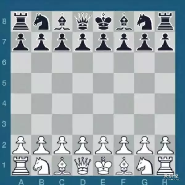 注意:棋盘右下角必须是白色格子,白方王在黑色格子上,黑方王在白色格子上。