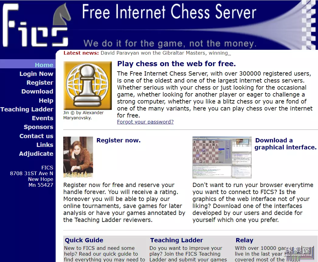 最大的网络国际象棋免费服务商,强调网站宗旨“为棋,不为钱”,提供网上免费下国际象棋、进行国际象棋比赛的平台。