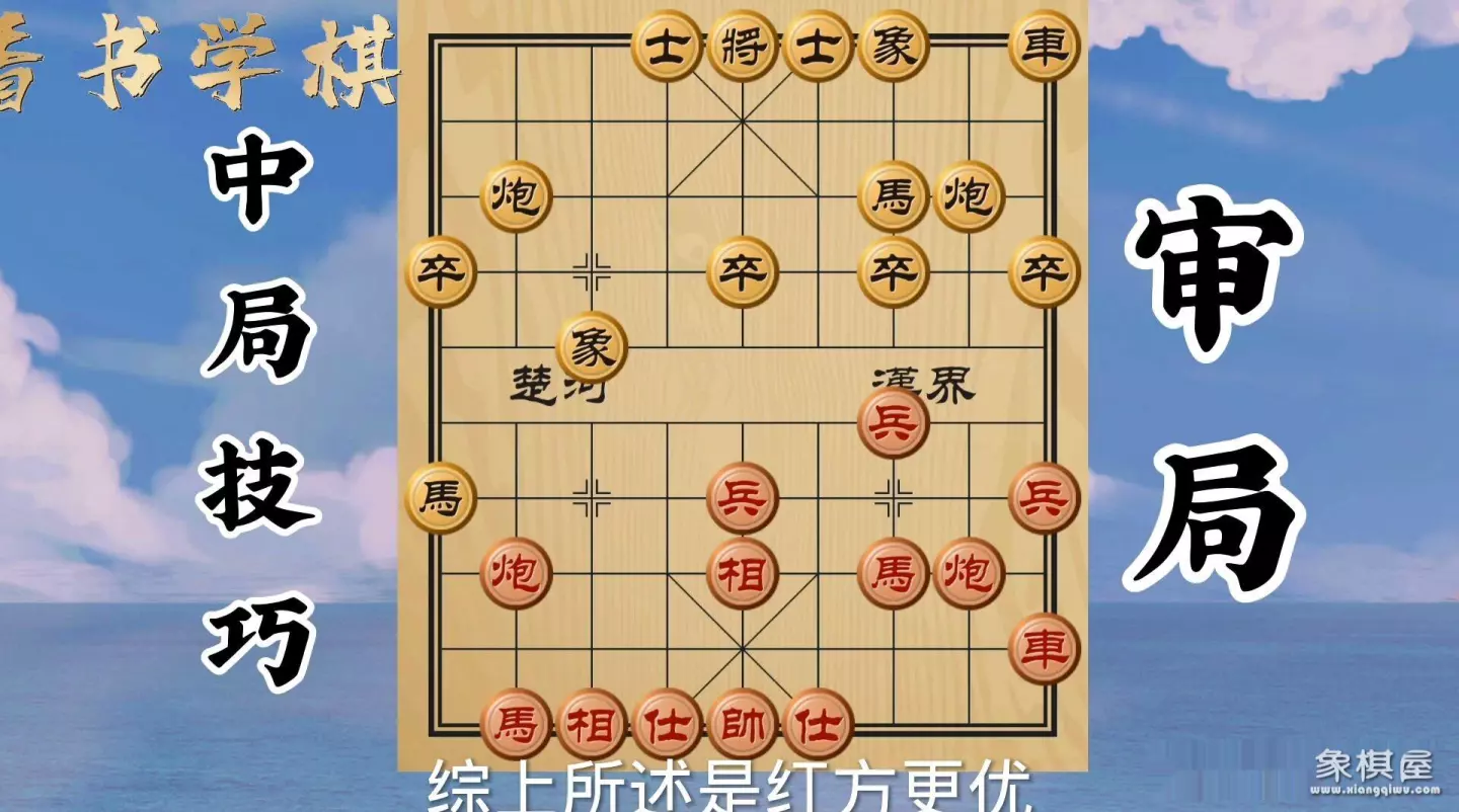 学习如何审局,这是中局技巧之首。我们普通棋迷之所以把握不了中局,就是不能准确判断形势,不知道孰优孰劣,判断不了优势在哪,缺点是啥。